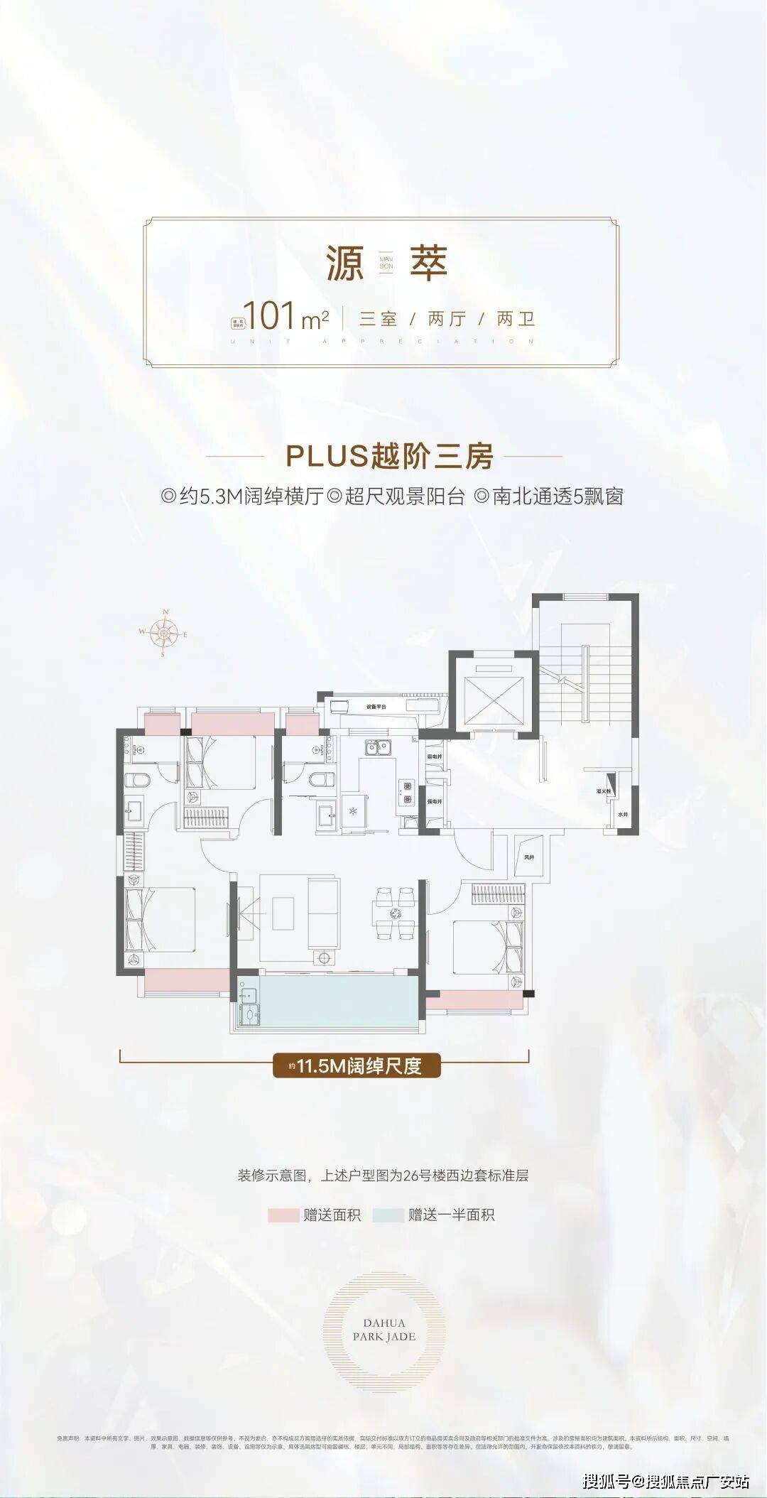 典范飞机户型+三开间朝南+餐客厨一体化+约5。3m的阔绰横厅,全体南向面宽达到约11。5m!整个户型的通透度和采光度很棒。